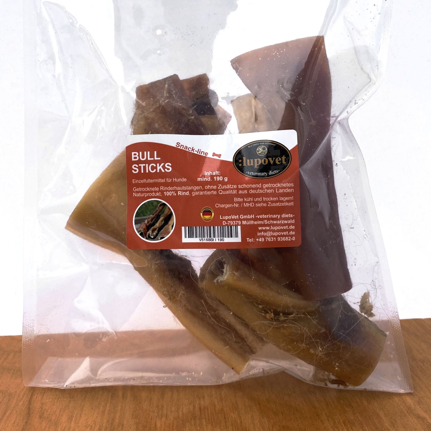 In Einzelfällen können sich auf den Bull Sticks noch restliche Haare befinden, die von Ihrem Hund völlig unbedenklich mitgefressen werden können und zusätzlich für eine natürliche Darmreinigung sorgen.