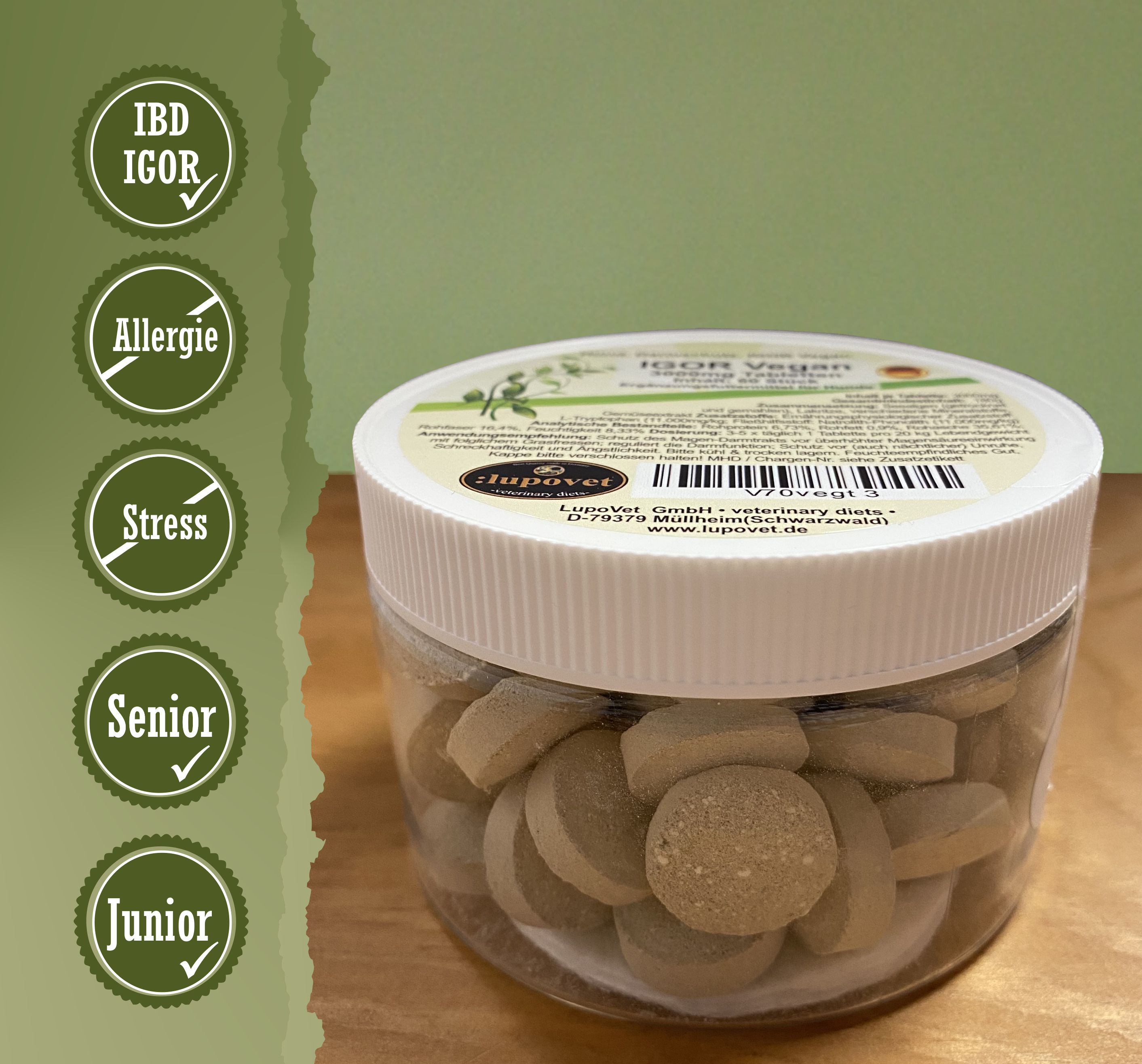 mein Malteser bekommt jetzt seit ca. einem 3/4 Jahr IGORvegan. Er bekommt es morgens und abends mit seinem Nassfutter. Wir haben damit sein Sodbrennen und rezidivierende Magenbeschwerden super in den Griff bekommen.