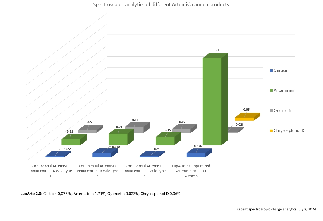 , getrocknet und gemahlen; Artennua (weltweit höchster Artemisiningehalt) in optimierter Wirkstoffmischung.